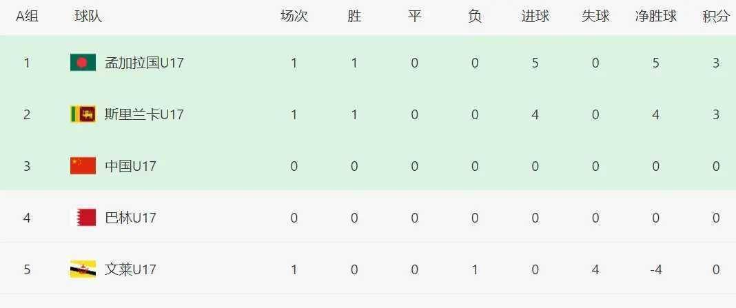 原来在首轮另一场比赛中,孟加拉国队5-0横扫东帝汶,正是这多出的一个净胜球,让中国队体会到了“胜利的遗憾”。按照本届U17亚洲杯预选赛“只有小组头名才能直通决赛圈”的残酷规则,每一粒进球都可能成为出线的生死符。