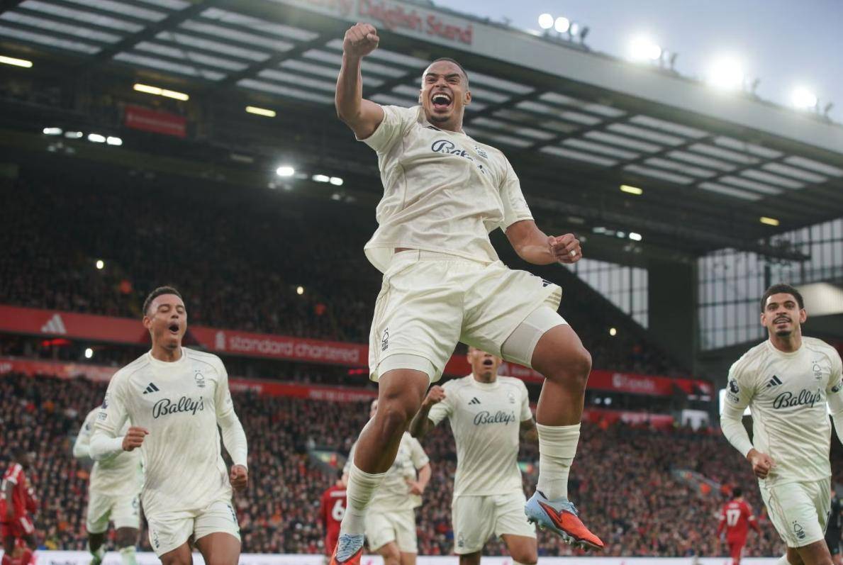开场时利物浦还能靠传控撑场面,但第33分钟角球乱战中,穆里略一脚爆射破门,VAR确认进球有效,红军球员的抗议显得苍白无力。下半场刚开场39秒,森林又打穿左路,萨沃纳推射扩大比分。