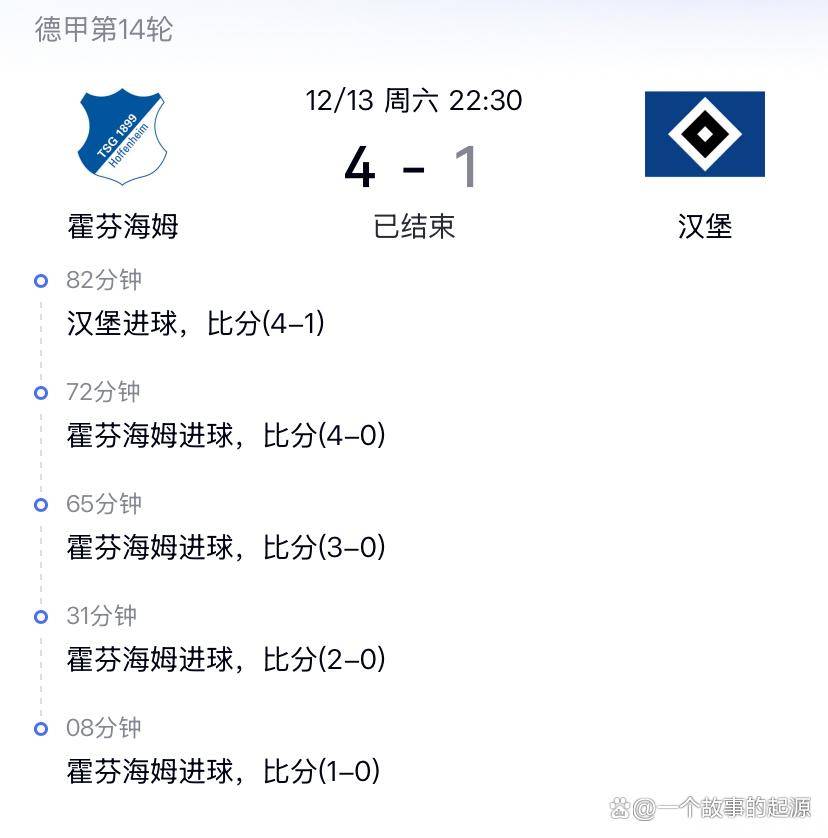汉堡则继续其客场疲软的表现,1-4不敌霍芬海姆。汉堡本赛季客场至今未尝胜绩,6个客场2平4负,狂丢12球,场均失球达到2个。