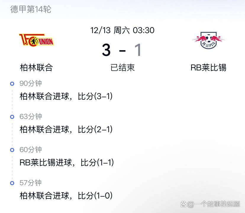 莱比锡仅用三分钟就由蒂迪亚姆·戈米斯扳平,但柏林联合迅速回应。克里斯托弗·特里梅尔精准传中,伊利亚斯·安萨赫头球破门再次领先。比赛末段,蒂姆·斯卡克通过反击锁定胜局。